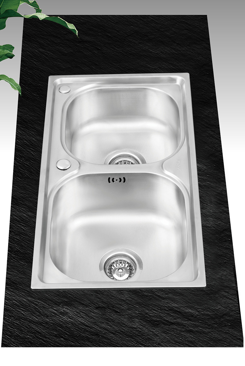 Ưu điểm vượt trội của dòng chậu này là đáy bồn sâu, láng bóng nên hạn chế được nước văng làm mất vệ sinh và ướt sàn. Bên cạnh đó, dung tích hai hố chậu rộng giúp tăng thêm công suất sử dụng.