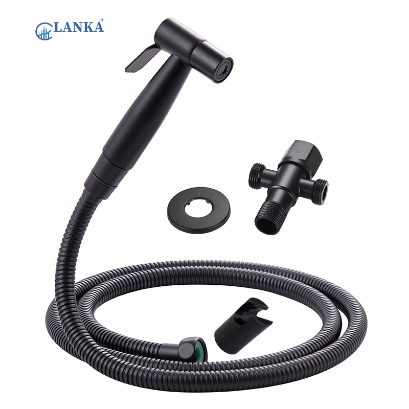 Bộ Vòi Xịt Vệ Sinh INOX 304 + Van T khóa nước Sơn Tỉnh Điện Màu Đen LANKA VX09