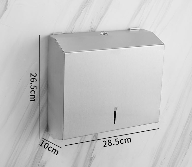 Hộp đựng giấy lau tay treo tường inox 304 có kiểu dáng sang trọng cùng chất liệu cao cấp dùng để đựng khăn giấy được xếp chồng theo dạng lớp, zic zac hoặc xen kẽ nối tiếp thường được gắn ngay trên bồn rửa tay trong bếp, nhà vệ sinh ở các gia đình hay các trung tâm thương mại, nhà hàng, khách sạn, văn phòng làm việc hay các khu dịch vụ giải trí khác.
