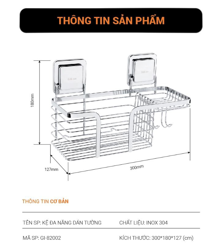 Kệ nhà tắm đa năng dán tường cao cấp GI-82002 thực sự gây ấn tượng mạnh với người nhìn ngay từ lần đầu tiên với vẻ sang trọng toát lên mạnh mẽ.