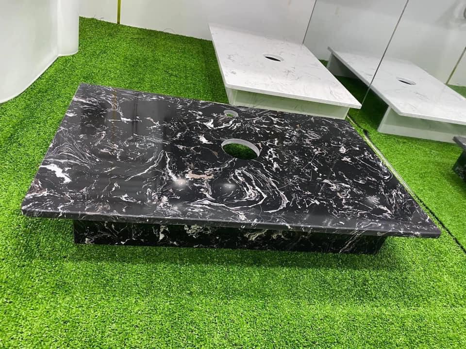 1. Mặt Bàn Lavabo Đá Marble Đen Tia Chớp ( có ghép chỉ dày 10cm )