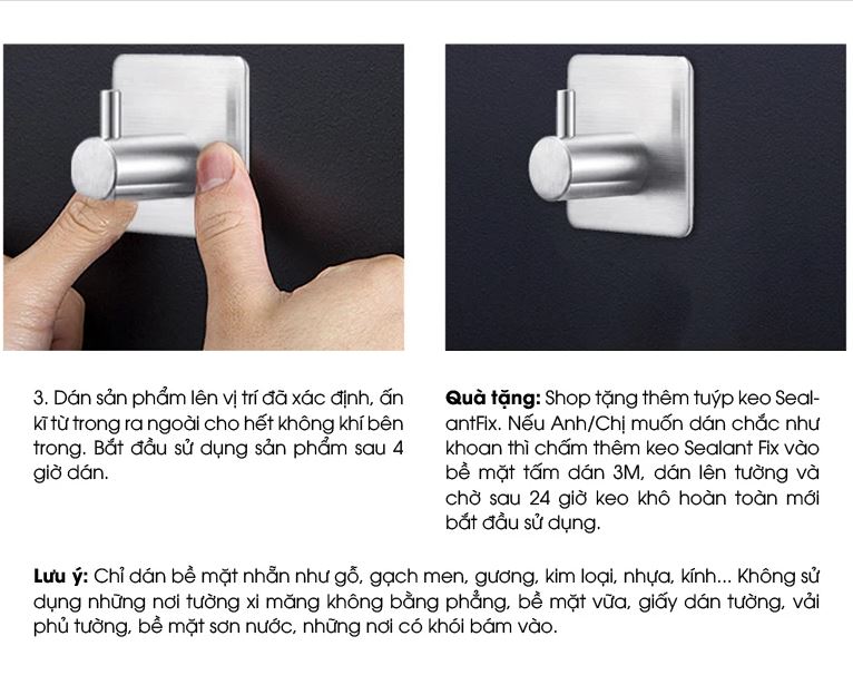 Móc đơn dán tường inox 304 cao cấp