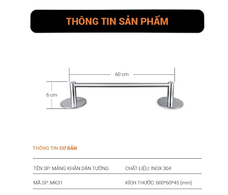 Thanh máng khăn dán tường inox 304 MK31 có thiết kế sang trọng, mẫu mã sắc sảo chịu được lực lớn, khả năng chịu va đập cao, khó bị móp méo hay gãy gọng. Mức giá hợp lí cho một sản phẩm cao cấp sẽ giúp bạn có ngay một không gian thoải mái và hiện đại.